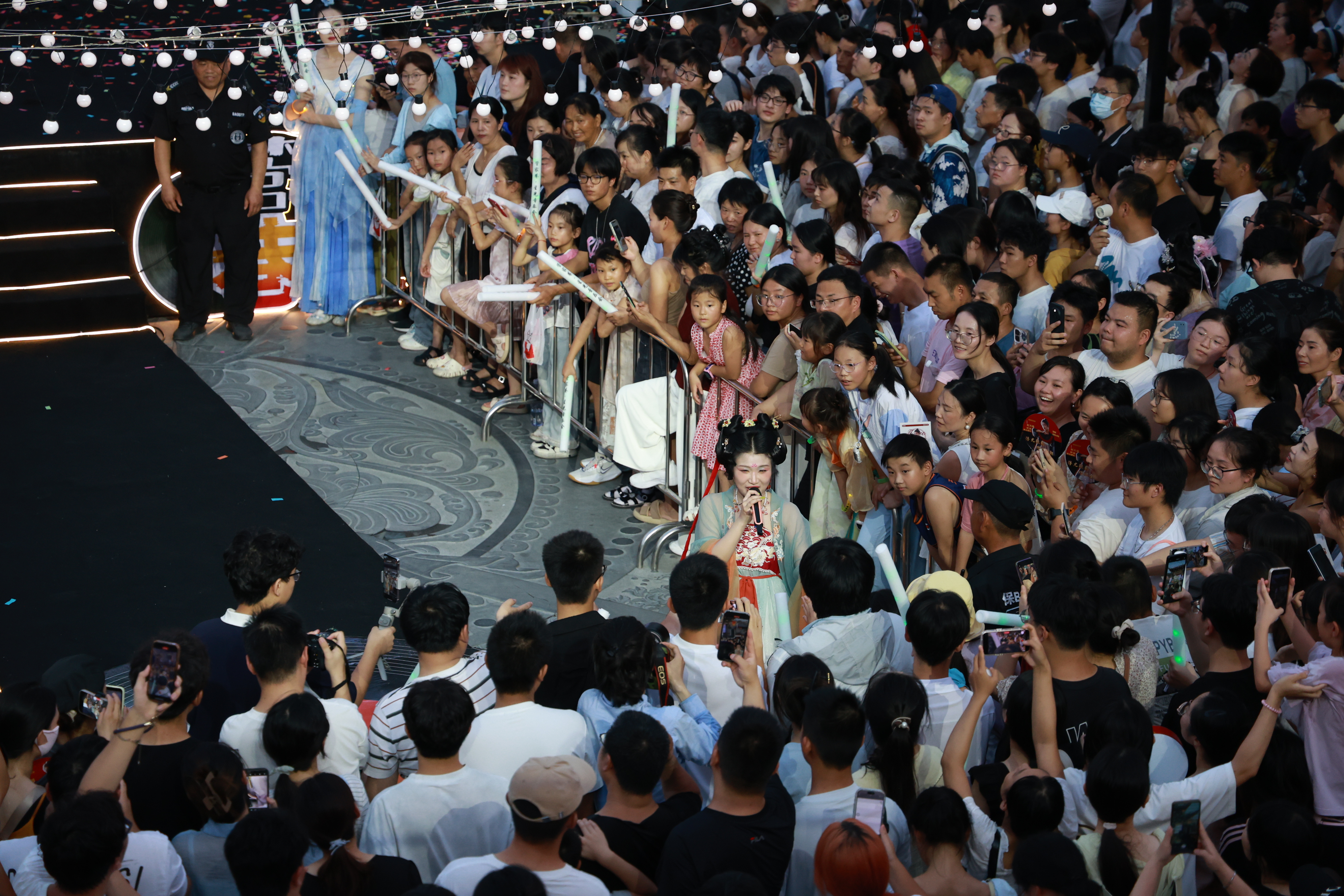 作为省域副中心城市,襄阳深挖文化基因,以“夜演、夜游、夜宴”打造沉浸式体验。唐城景区以《大唐倚梦》大型嵌入行进式夜游为核心,结合声光电、裸眼3d投影等一系列技术,30余场唐文化节目轮番上演。暑期更特别推出了“国风电音泼水节”,将现代艺术形式与民俗文化深度融合,给游客带来不一样的游玩体验。“带孩子看演出,通过裸眼3d投影了解唐朝文化,学习唐朝历史,不仅比课本更生动,还能让孩子感受到科技与传统文化相互交融的魅力!”武汉游客刘女士在游览景区感慨道。据统计,2025年上半年,该景区接待游客103万人,夜间游客占比达到60%。进入7月后,夜间游客占比直冲70%,比去年同期增长10.02%。