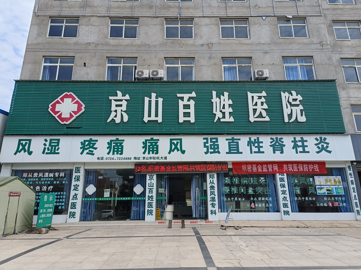 | 京山百姓医院位于京山市轻机大道八里途社区二组(新法院东500米),是一家以治疗痛风、类风湿性关节炎、强直性脊柱炎为特色的综合医院。医院现占地面积12000㎡,建筑面积7000㎡,拥有大型医疗设备核磁共 |